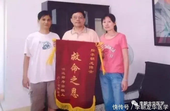 紧急时刻,其妻偶遇在广州工作的表哥,表哥请李朝龙教授治过病,他叫表妹立刻来找李教授。李教授给病人开了一张中药处方。一星期后,病情大有好转。之后转到李教授工作的医院继续治疗,40天后,患者痊愈。出院后,继续服李教授开的中药治疗“乙肝三阳”,最终,两个抗原消失。这个28岁的年轻人获得了第二次生命。小夫妻俩向李教授赠送了“救命之恩”锦旗表示感谢。