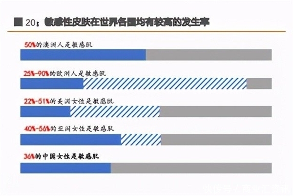 2021年,我国新冠肺炎疫情防控工作取得了显著成效。在疫情防控进入常态化的情况下,公众对于防疫期间长期佩戴口罩出现的皮肤过敏、屏障受损等“口罩脸”症状及相关皮肤修复问题的探讨也与日俱增。加上现代生活压力和精神压力增加和环境污染日益加重等因素,敏感性皮肤发生率逐渐升高。据数据显示,欧洲国家发生率平均为45%,亚洲国家为50%,我国女性约为36%。