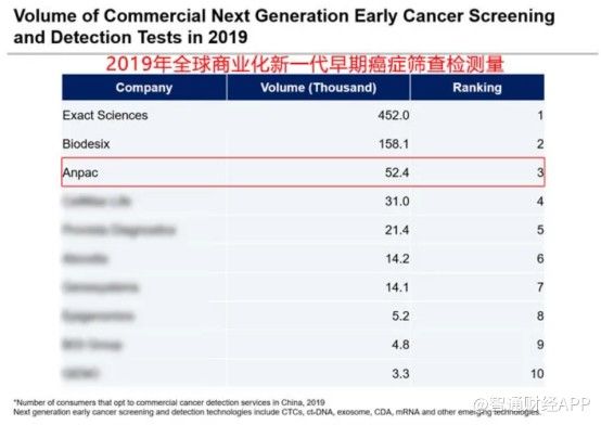 数据显示,全球企业增长咨询公司弗若斯特沙利文(Frost & Sullivan)就2019年癌症早期检测市场做了独立调研分析,在2019年新一代癌症早期筛查方面,临床和商业样本量,安派科分别以全球第三,中国第一的排名,领跑癌症早筛的新赛道。