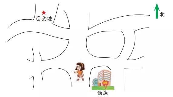 除了教室里的情境,学生每天上下学经过的交通路线也可以成为培养空间认知能力素材。教师可以展示相关的地图,创设问题情境,让学生分别用“前后左右”和“东南西北”两种方式指路。