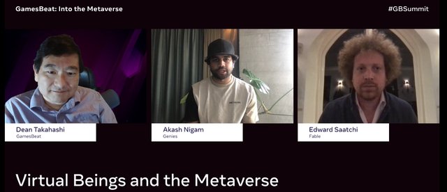 2021 年 1 月 21 日,Fable Studio 的 CEO Edward Saatchi 在 GamesBeat 和 Oculus VR event中发表了 Metaverse 和虚拟人(Virtual Beings)的一些看法。他认为,发展虚拟人的最终目标是达到像《Her》或《银翼杀手 2049》中虚拟人的复杂性和自我意识。进一步来说,虚拟人需要具有:社交性、互动性以及记忆性,而这背后的推力则是 AI。