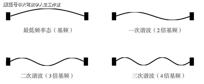 图2?振动弦频率最低的几个定态。对于量子粒子而言,能量和频率成正比。图片来源:作者绘制。